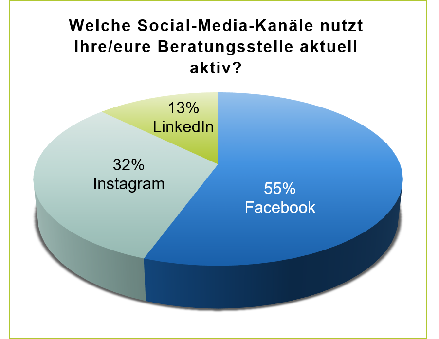 In einer Online-Befragung der IQ Anerkennungs- und Qualifizierungsberatungsstellen durch die IQ Fachstelle Anerkennung und Qualifizierung im Jahr 2025 zeigte sich, dass Facebook weiterhin der meistgenutzte Kanal bei den IQ Beratungsstellen ist – über die Hälfte der Anerkennungs- und Qualifizierungsberatungsstellen greift auf die Plattform zurück. An zweiter Stelle folgt Instagram mit knapp einem Drittel der Nennungen, während LinkedIn von 13 Prozent der Beratungsstellen genutzt wird. X (ehemals Twitter) und TikTok spielen derzeit keine relevante Rolle in der Social-Media-Arbeit der IQ Beratungsstellen.
