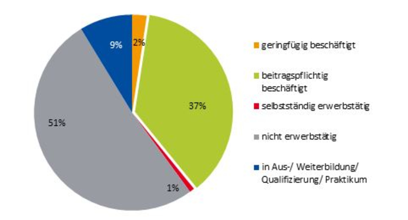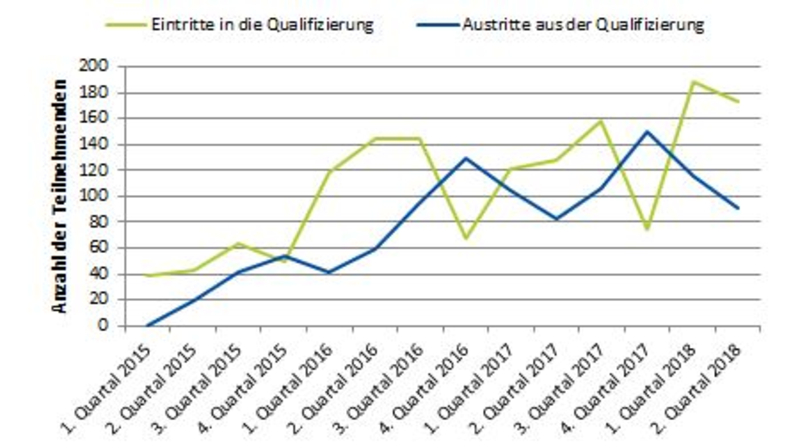 Es ist zu erwarten, dass die Anteile der beitragspflichtig Beschäftigten im Laufe der Zeit nach Abschluss der Qualifizierung weiter ansteigen, da die Bewerbungsphasen mitunter einige Zeit in Anspruch nehmen, bevor sie zu einer Erwerbstätigkeit führen.