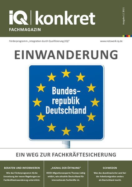 In der aktuellen Ausgabe des Magazins IQ konkret berichten wir, wie das Netzwerk IQ dabei hilft, das Gesetz umzusetzen und Unternehmen vor Ort unterstützt. Außerdem werfen wir einen Blick auf andere Akteure, die ebenfalls zur Fachkräfteeinwanderung beraten, wie die Zentrale Servicestelle Berufsanerkennung (ZSBA), das Portal Make It in Germany und das internationale Projekt ProRecognition.